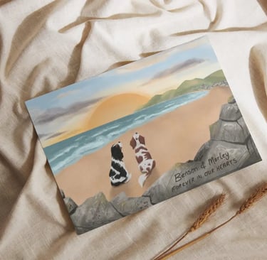 Each illustration is custom-created from your photos and inspired by a place that holds meaning for you and your pet. It might be where you shared daily walks, lazy afternoons or peaceful moments together.