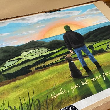 "We lost our beloved family dog after 16 years. She was my partner’s shadow; they did everything together and this painting by Where We Walked has captured the very essence of that relationship. It’s in pride of place on our wall so we are reminded every day of what an amazing little dog and best mate we had. Thank you."